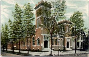 At the height of the Civil War, in 1863, Evansville's Jews got a bit of bright news when B'nai Israel announced the building of a synagogue at Sixth and Division (now Court) Streets (pictured above). The new building, which housed 600 people in the sanctuary opened in August of 1865, less than four months after the end of the Civil War. Congregants joyously celebrated the buildings dedication with a brass band playing and a large choir coming up from Memphis to perform. All of Evansville's prominent officials attended the gathering and Reform founder Isaac Mayer Wise came down from Cincinnati to attend the temple's dedication.